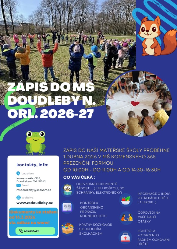 Základní škola a Mateřská škola Doudleby nad Orlicí      Vytvořila digitální agentura 4WORKS Solutions     GDPR Ready