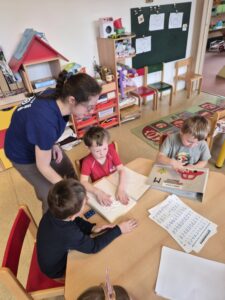 Následoval Den otevřených dveří. Uvítali jsme nové rodiče s dětmi, kteří si přišli se svými ratolestmi prohlédnout prostředí MŠ. Dali jsme jim také nahlédnout do stylu našich vzdělávacích činností.