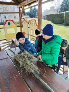 V pátek 20. března nás také čekalo rozloučení se zimou. Vynesli jsme Morénu, utopili jí v řece a tím oslavili příchod jara. Ještě nás čeká exkurze na farmu pana Hlaváčka. Tentokrát se podíváme na domácí a hospodářská zvířata a jejich mláďata. Děti se již nemohou dočkat.